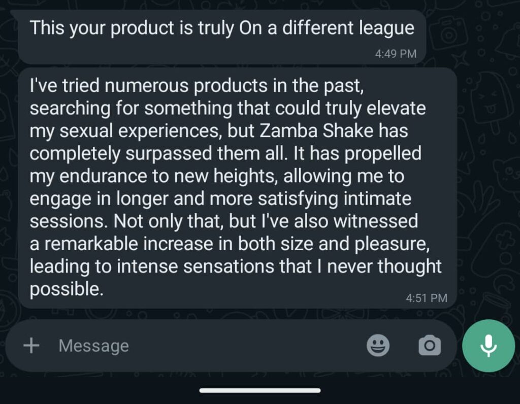 Shake things up in the bedroom with Zamba Shake! Say goodbye to premature ejaculation and Small Penis. Make It Bigger, Thicker And Stronger + Last Long In Bed With The Zamba Shake